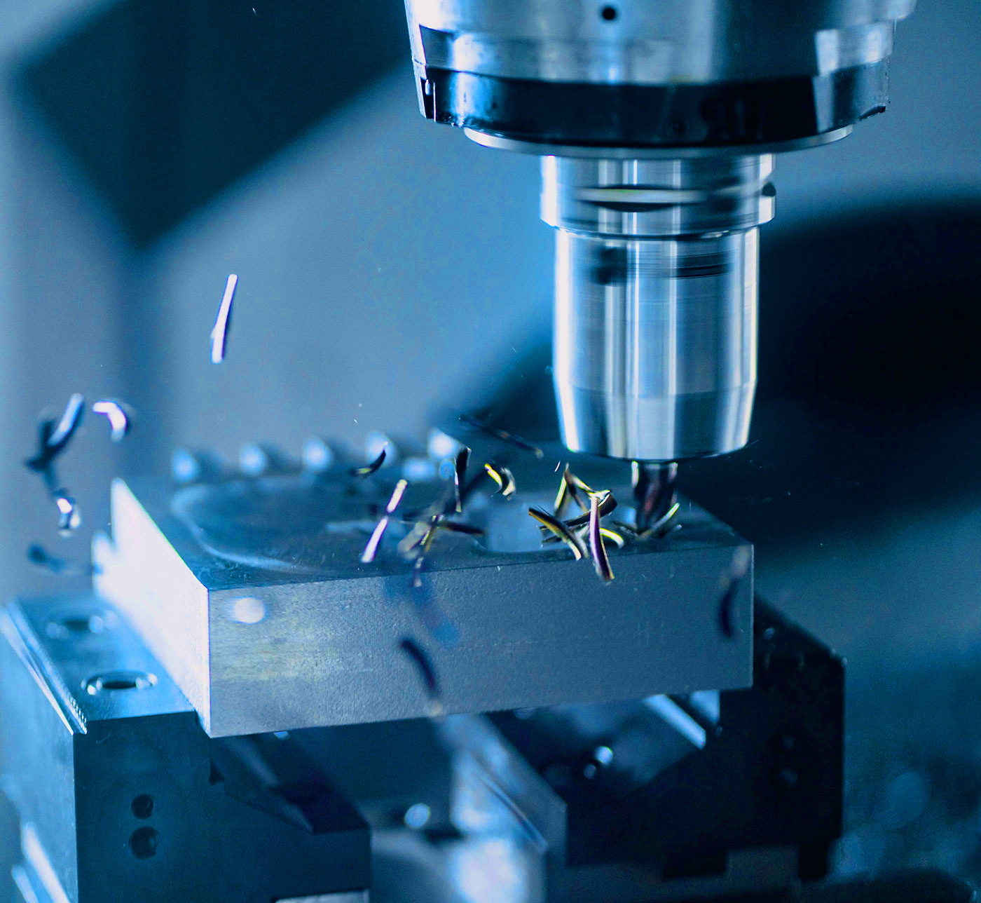 CNC milling is a subtractive manufacturing process, 3-axis and 5-axis cutting tools are programmed and managed by computer numerical control (CNC), removing material from the plastic or metal block.